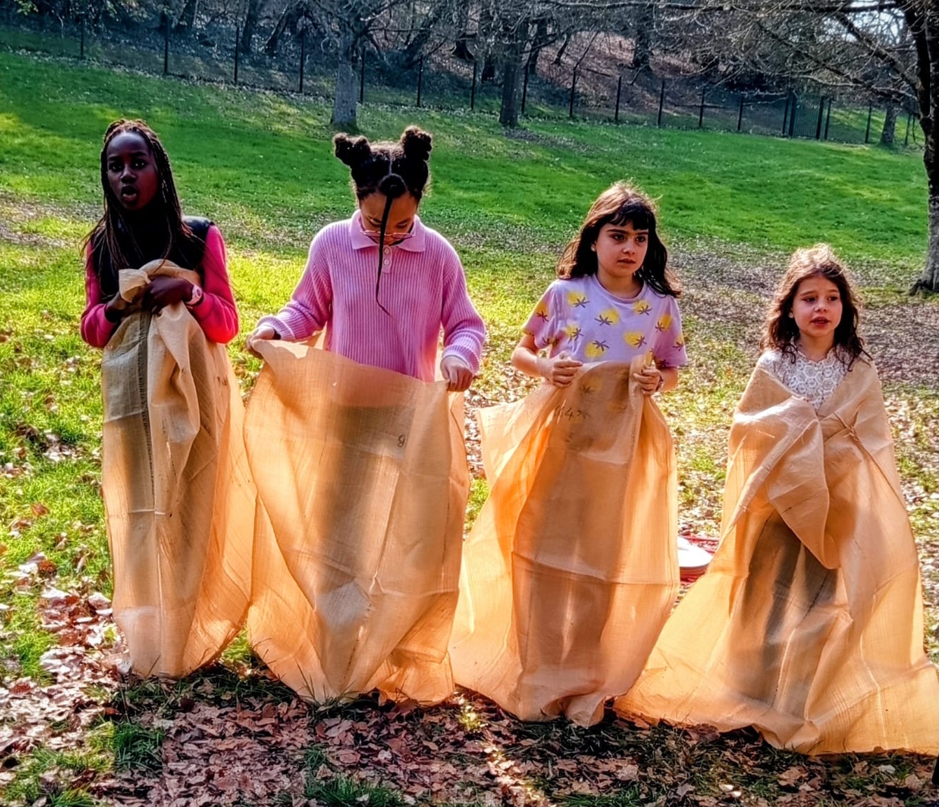 - Atelier activité physique : Course en sac, jeu des cerceaux, assiette carton sur la tête.