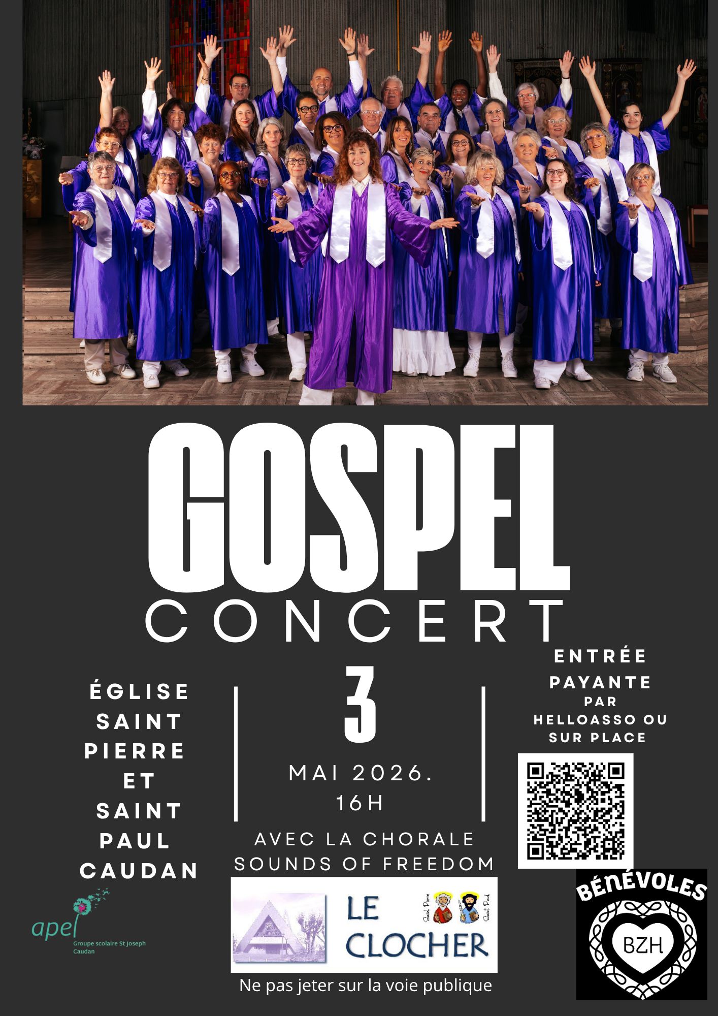 L'Apel Saint Joseph et la paroisse de Caudan organisent un concert assuré par le groupe Sounds of freedom.